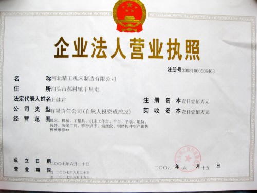 公司名稱:河北精工機(jī)床制造有限公司 公司地址:河北省泊頭市千里屯工業(yè)區(qū)138號 電話:0317-4580234 傳真:0317-4580235 手機(jī):13932735398 網(wǎng)址:
